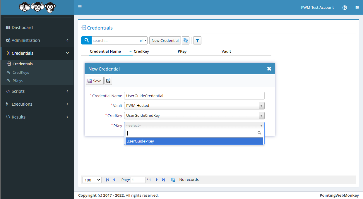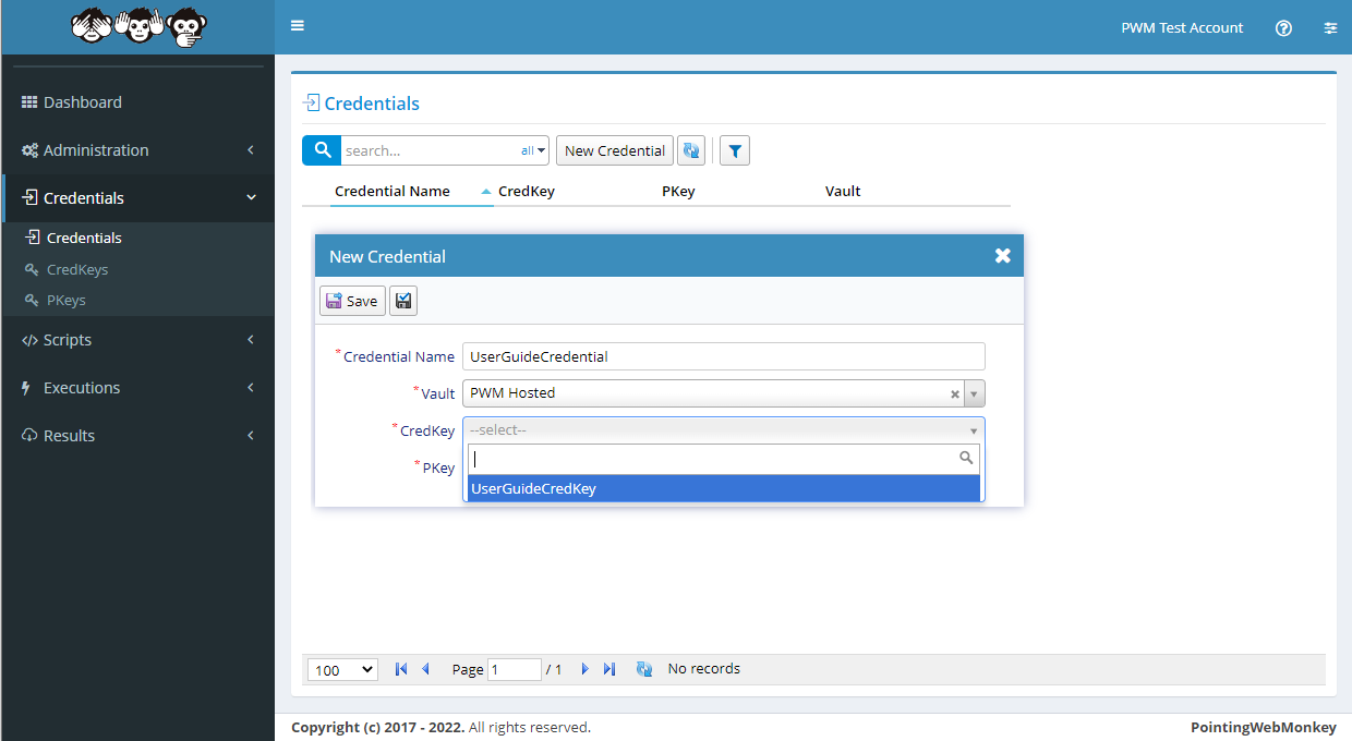 and selected "PWM Hosted" as the 'Vault' to store the CredKey