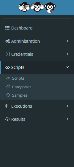 From the navigation menu on the left, click on "Scripts", giving a drop down of three options