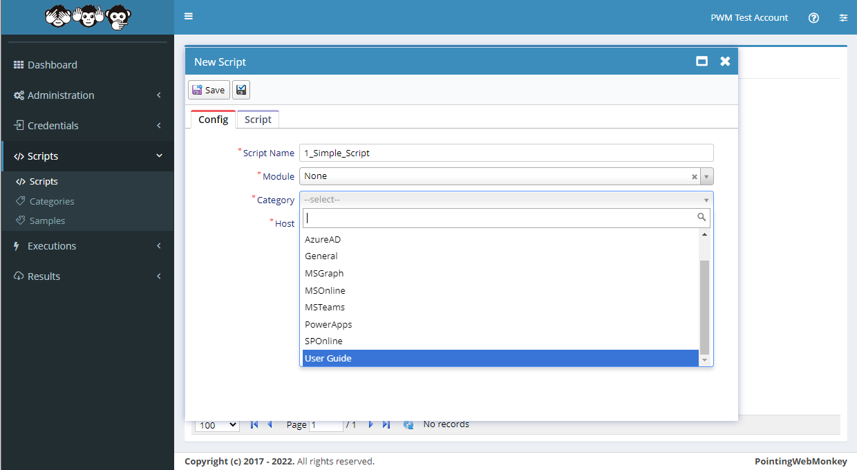 After clicking the "New Script Category" button, the "New Script Category" window will appear with