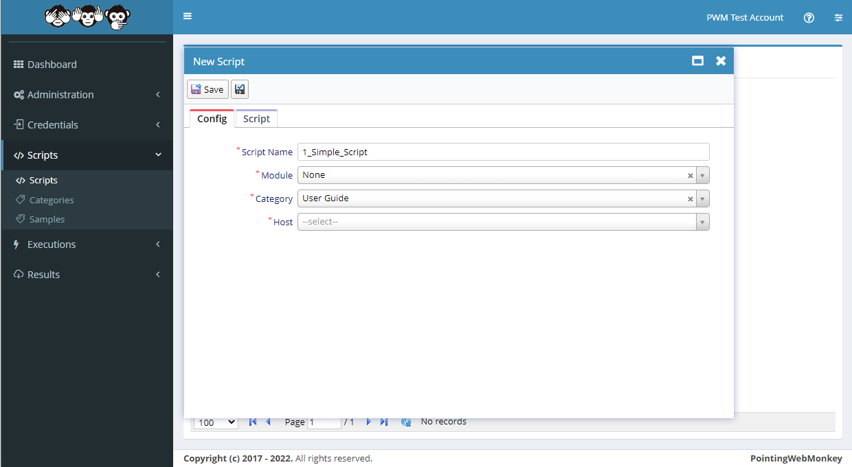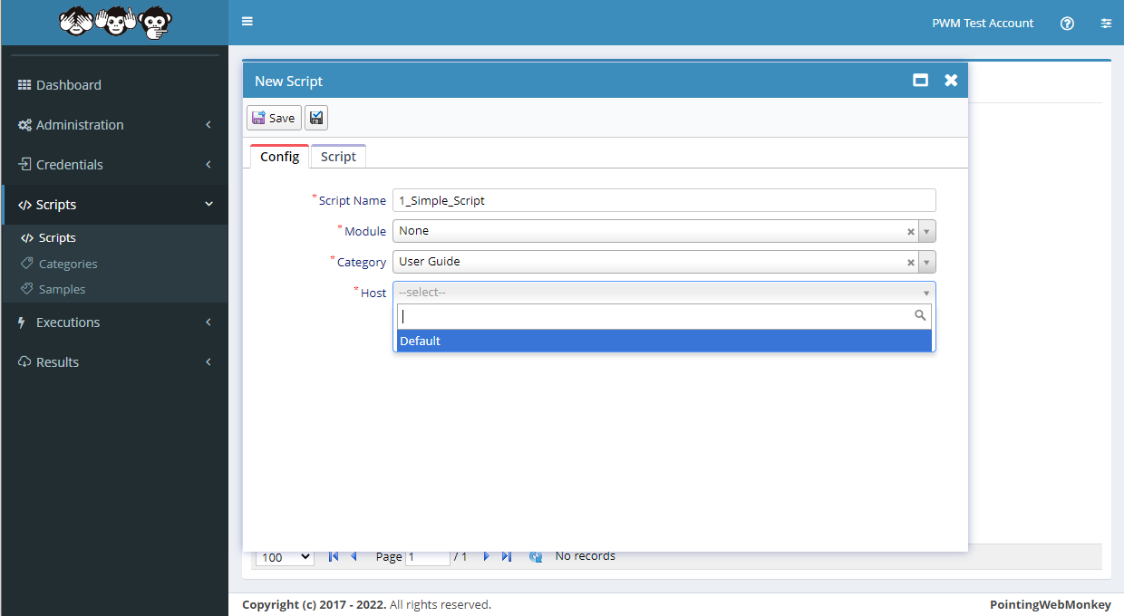 Once saved the newly created script will appear in the "Scripts" list under the "Script Name" entered