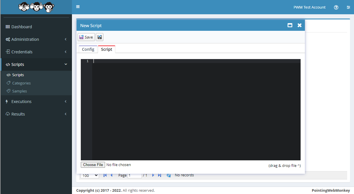 Clicking either of the three options available, will take you to each corresponding "Scripts" section